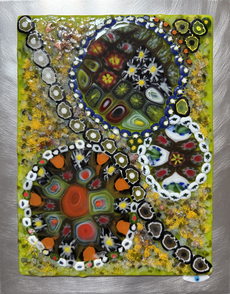 Free local pickup or delivery. Otherwise, please contact me at genelady8@gmail.com for shipping costs. The sizes of my fused glass artworks include the framing. All of these pieces are ready to hang on a wall. My prices depend on the size of the glass as well as the techniques and effort in making the piece, rather than the exact size of the framed artwork.
