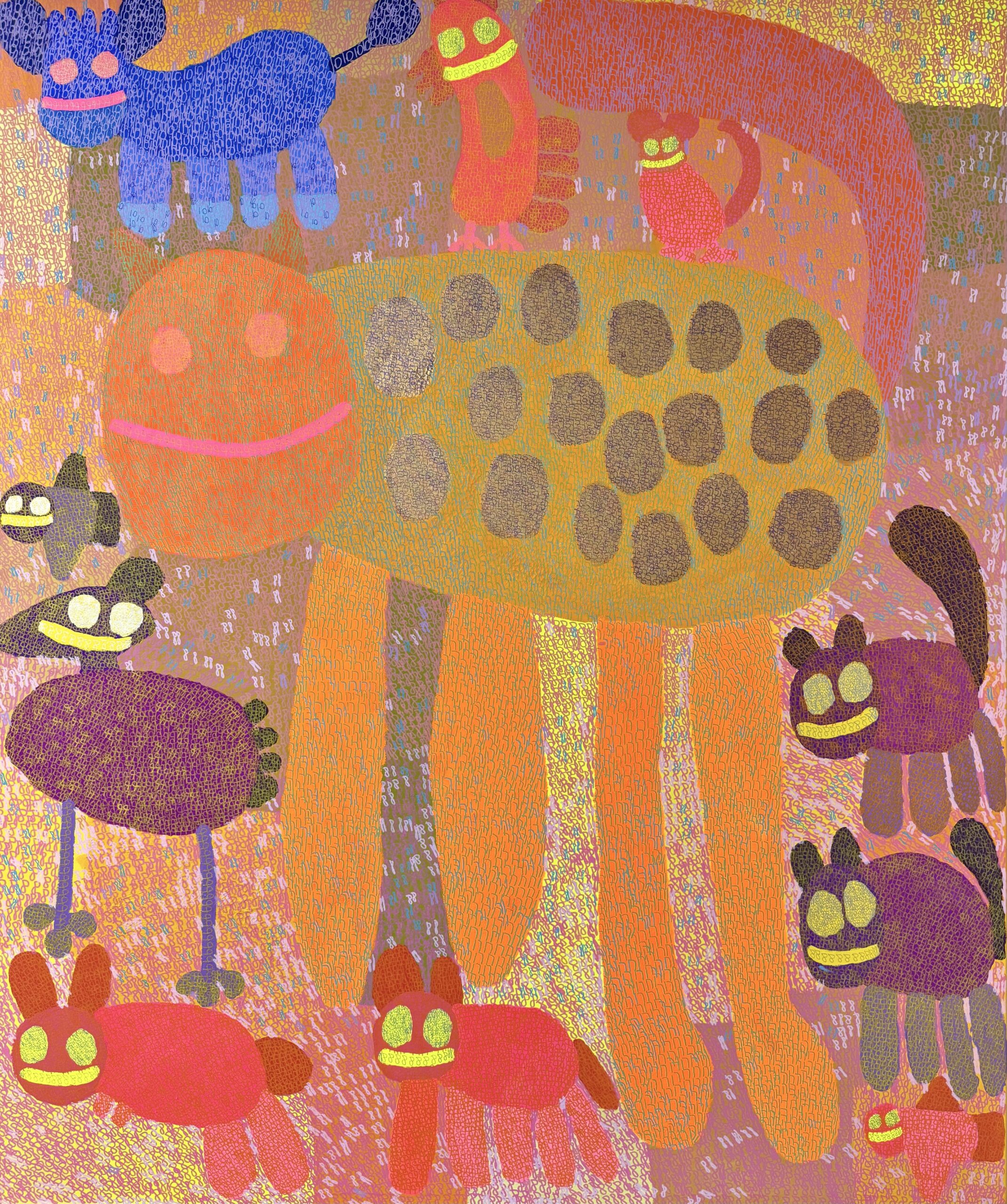 The leopard is having a perfect day because it’s with the animal friends (60×72″)